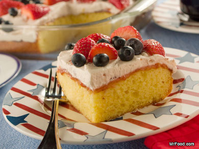 Need a dynamite cake recipe that'll cause fireworks at your table? Then show your patriotic colors with our deliciously easy Patriotic Poke Cake. And if you've never made a poke cake before, once you try it, you'll be hooked!