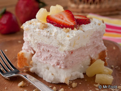 I am looking for a recipe for an angel food cake made with strawberries, in the cake and not a topping. Can anyone help me please!