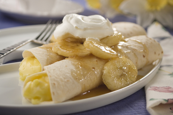 Flour tortillas easily transform into shortcut crepes that we fill with pudding and top with a mixture of warm bananas tossed in a to-die-for sauce. Bananas Foster Crepes are a do-it-yourself worthy of a French chef.