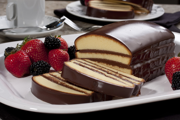 Take a no-bake shortcut and build a fancy looking and tasting layered dessert torte from store-bought, frozen pound cake frosted with healthy chocolate hazelnut spread. Shhh...no one has to know how easy it was!