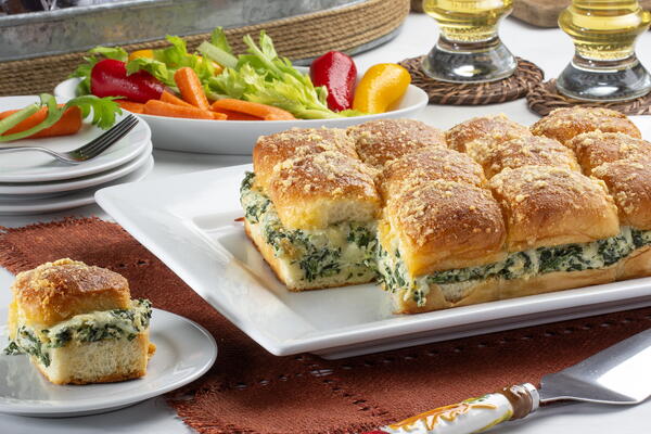 With all the holiday entertaining and game watching, if you’re looking for something special to serve, this is it. We took everything you love about spinach & artichoke dip and filled everyone’s favorite dinner rolls with it before baking it off. Oh, and the buttery parmesan topping makes these over-the-top delicious.