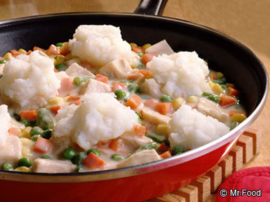 Make it even easier by using packaged pre-cooked sliced chicken and instant mashed potatoes.