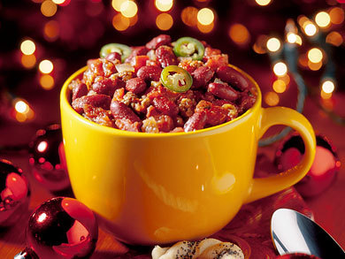 Depending on where we celebrate the holidays, there's a good chance the temperature will be a bit on the cool side...maybe even downright freezing! So why not have a slow cooker full of chili to keep spirits up and tummies warm? It's perfect 'cause the gang can help themselves whenever they get a break from all the decorating.