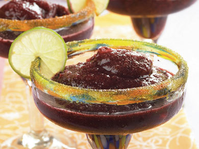- Dip rims of margarita glasses in orange juice then dip in sugar crystals to coat, if desired.