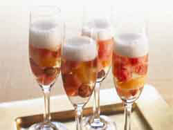 - Toss the fruit together and divide among champagne glasses. Pour champagne over the fruit, and serve.