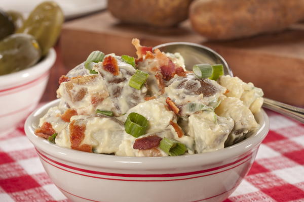 Our viewers are always writing in and asking for new ways to serve potato salad. Well, we got this recipe for Honey Mustard Potato Salad from Idaho and we think it's one of our favorite change-of-pace potato salad recipes. The bacon and honey mustard blend really add zing and flavor!