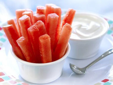 This is a wonderful finger food for little ones. I do not even think it would be necessary to provide a dip because these little watermelon fingers will "sale" themselves. (Keep a watchful eye on toddler)