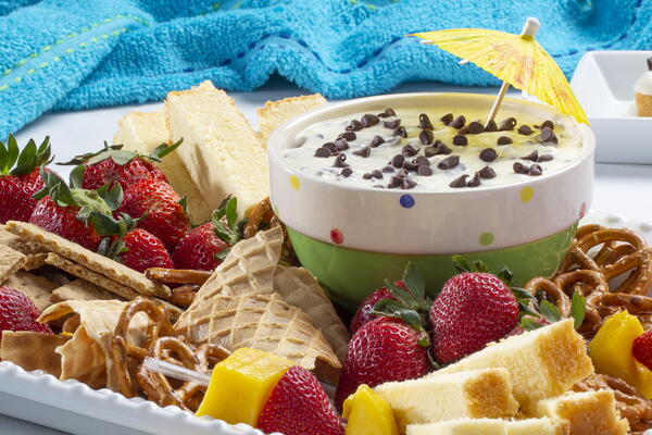 If you’re craving a cool and refreshing dip that’s as fitting poolside as it is indoors on a hot day… this is it. And what makes this so much fun is that you can dip anything from pieces of cannoli shells to frozen pound cake that we cut into sticks, fresh or frozen fruit or even pretzels. This is one of those recipes that’s a real keeper. You’ll see.