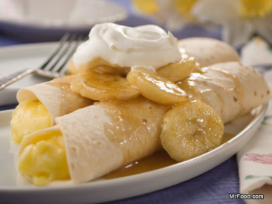 Flour tortillas easily transform into shortcut crepes that we fill with pudding and top with a mixture of warm bananas tossed in a to-die-for sauce. Bananas Foster Crepes are a do-it-yourself dessert worthy of a French chef.
