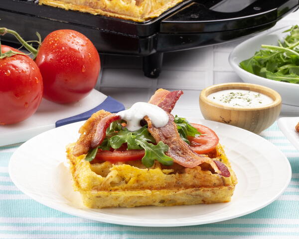 What happens when you combine everything you love about a BLT and serve it on top of a homemade crispy hash brown waffle? You get a brunch, lunch, or anytime favorite that’s comfort at its best. And when you finish it off with a spoonful of cool & creamy ranch dressing, get ready for all the oohs and aahs!