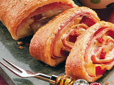 We love it when our strombolis are overstuffed with lots of yumminess inside, which is why we came up with this great recipe for Festive Stromboli. It's loaded with all the good stuff, like salami, ham, cheese, peppers, and more! This one is sure to make any occasion a festive one!