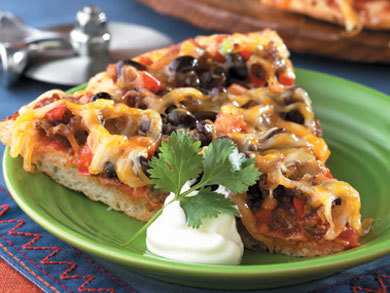 Do you know the way to Santa Fe? 'Cause if you do, we'd like to come along to show you how our version of Santa Fe Pizza is just as good as the real thing! Using a blend of Mexican flavorings, our homemade pizza recipe calls for a few unusual, yet flavorful, ingredients to create a dinner that's truly one of a kind. Feel free to modify the ingredients to how you like it best. It is, after all, your pizza!