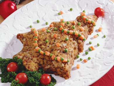 You can bake this in any type of oven-proof shaped Christmas mold. It's nice to use a Christmas tree mold and decorate the tree with cooked frozen peas and carrots.