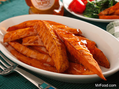- 6 large sweet potatoes, peeled and cut lengthwise into thin wedges