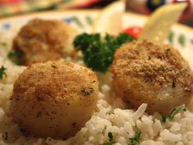 - In a small bowl, combine the butter, bread crumbs, parsley, oregano, and garlic; mix well. Sprinkle the scallops with pepper and place on the baking sheet.