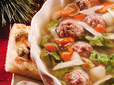If you're thinking about serving up a full course meal to company, then you've got to add our Escarole and Meatball Soup to the menu! This flavorful soup is full of color and flavor. It's an easy soup recipe that looks like it was made for special occasions.