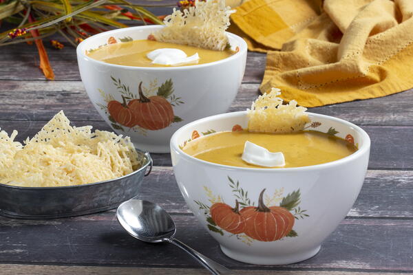 If you’ve never had pumpkin soup, get ready to “fall” in love with a fall favorite that’s comfort at its best. It’s super simple to make, velvety smooth, and when you top each bowl with our homemade Parmesan cheese twills, it’s something you’ll never forget. Maybe serve up an apple pie or cobbler for dessert, followed by a drive to check out the fall foliage? Life doesn’t get better than this.