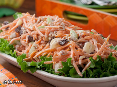 Celery and walnuts add crunch, while raisins and pineapple sweeten this vitamin-packed salad. It's a play on the famous Waldorf salad, replacing the usual apple with colorful carrots. Who knew that carrot recipes could turn out this well?!