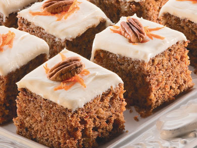 Delicious cake has a tendency to disappear, but our Carrot Cake Squares are a true vanishing act. This moist, flavorful cake topped with cream cheese icing attracts all the hungry tummies, and its easy-to-eat square pieces seem to fly off the table. Good thing it only takes 35 minutes to cook more!