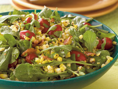 - In a large bowl, combine corn kernels, arugula, tomatoes, cilantro, lime juice, and garlic, tossing gently to coat. Season to taste with salt and pepper. Serve immediately.
